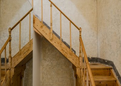 All’ultimo piano invece è stato possibile intervenire maggiormente date le condizioni in cui versava il sottotetto. La copertura in legno è stata ricostruita secondo lo schema pre-esistente. È stata mantenuta e ripristinata la pavimentazione originale in cotto e sono stati realizzati due bilocali e un ufficio: un arredo contemporaneo, in contrasto con il contesto storico in cui è inserito, caratterizza gli ambienti.
